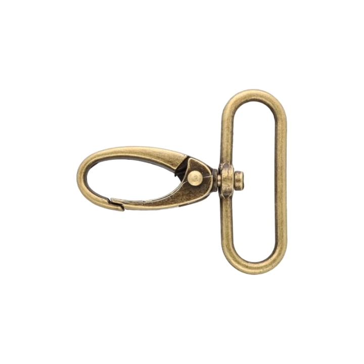 Metalowy karabińczyk z obrotową końcówką.