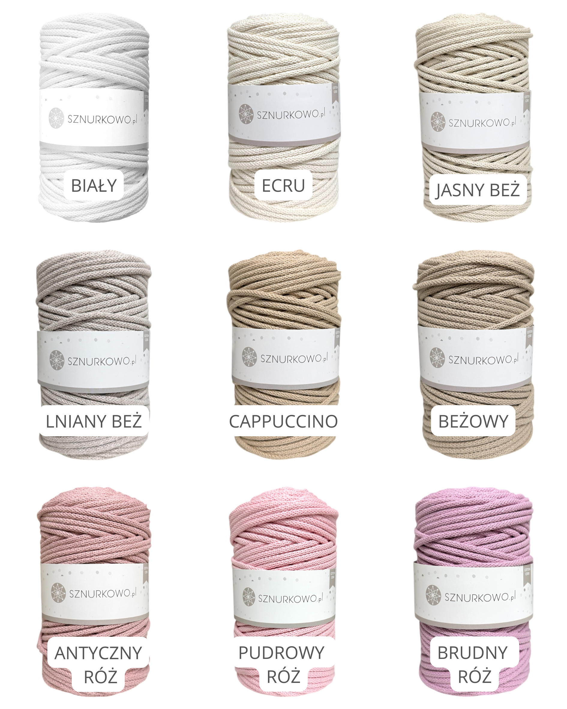 Zalecamy jednorazowy zakup odpowiedniej ilości sznurka do wykonania planowanej rzeczy ze względu na to, iż kolory z różnych partii produkcyjnych mogą się od siebie różnić.